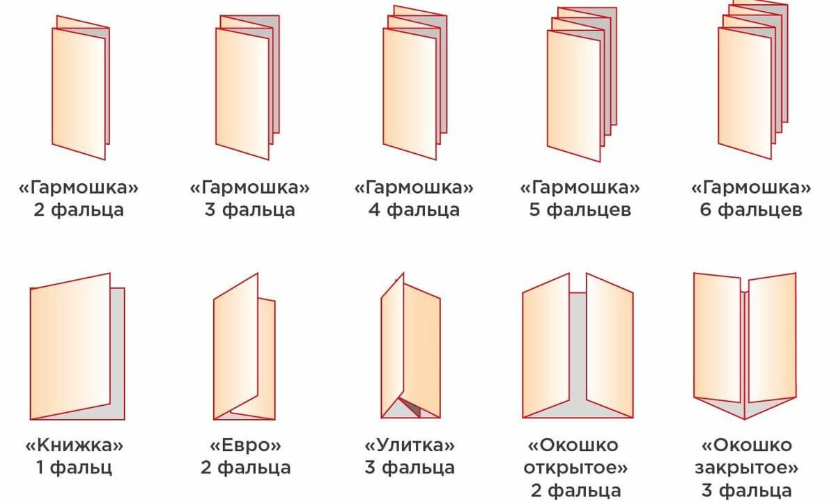 - у буклета — несколько полос, сложенных вручную или машиной