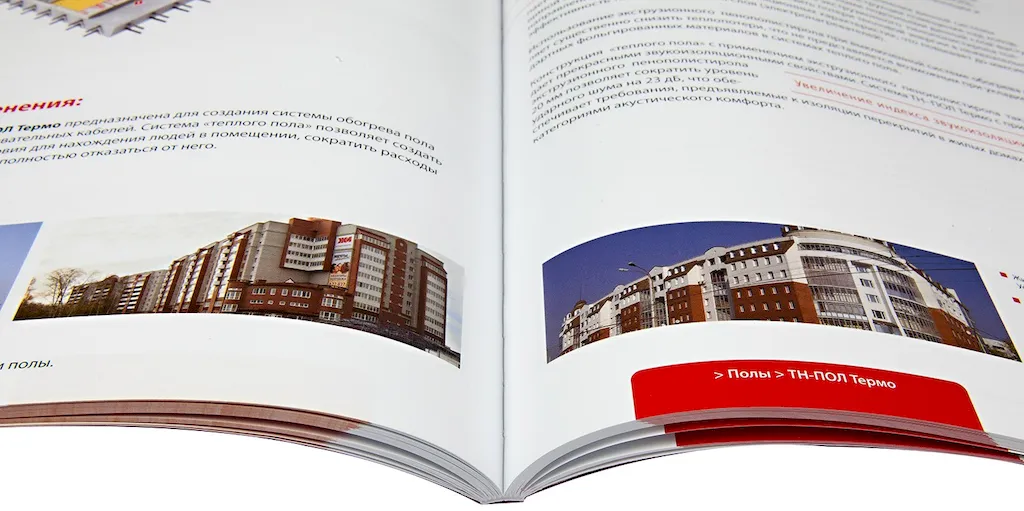 Для маркетолога вопрос что такое КБС чаще всего связан с каталогами товаров. Такой переплёт подходит для изданий толщиной корешка от 2 до 50–70 мм, поэтому в одном томе можно разместить сотни страниц с фотографиями и описаниями. В рекламных брошюрах клеевая технология помогает выдержать плотную верстку, когда в издании много иллюстраций, таблиц, схем. Журналы с периодическим выходом тоже нередко делают на КБС, если требуется солидный вид и комфортное листание. Для книг в мягкой обложке этот метод стал стандартом благодаря сочетанию цены и надёжности.