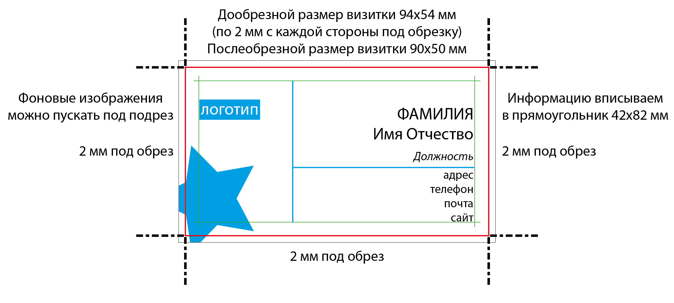 Дообрезной формат всегда превышает финальные габариты изделия. Это связано с необходимостью оставить припуски для обработки краёв. Покупной размер бумаги для визитки 94×64 мм при обрезном формате 90×60 мм — наглядная иллюстрация. Без этих запасов невозможно качественное оформление краёв продукции.