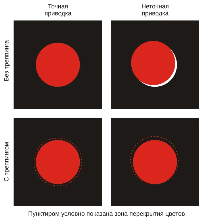 Процесс треппинга требует точных расчётов. Компенсация смещения достигается наложением контуров. Современные программы автоматически регулируют параметры перекрытия.