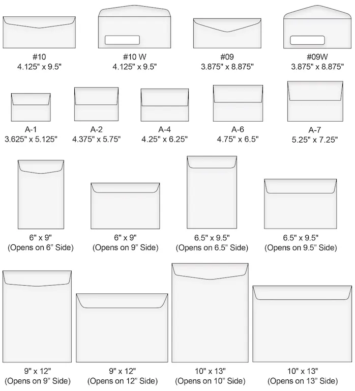 Единая система размеров разработана для совместимости с офисной техникой и почтовым оборудованием. Наиболее востребованы пять вариантов:
