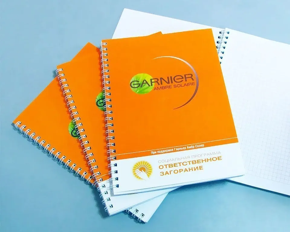 Используйте блокноты как часть фирменного стиля. Нанесите логотип и контакты. Такой подарок клиенты не выбросят. Рекламные блокноты работают на имидж компании.