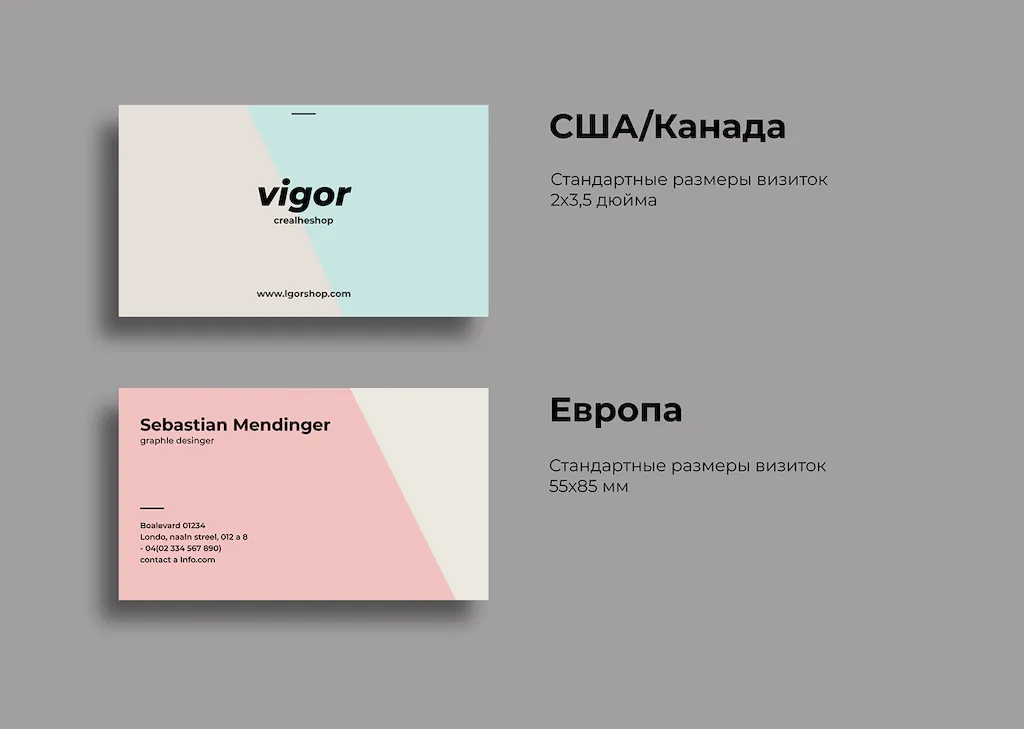 В Европе и Северной Америке приняты аналогичные параметры. Отличие лишь в дюймовой системе измерений. Международный стандарт гарантирует, что вашу визитку поймут за рубежом. Это особенно важно для компаний, работающих с иностранными партнёрами. Уточните, какой размер должен быть у визитки для международных мероприятий.