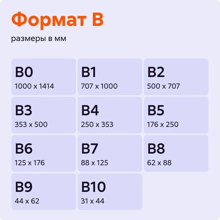 Серия В включает размеры В4 (250×353 мм) и В5 (176×250 мм), которые применяют для книг и журналов. Формат В6 (125×176 мм) подходит для почтовых открыток и небольших буклетов. Такие параметры реже встречаются в повседневной печати, но важны для специализированных проектов.