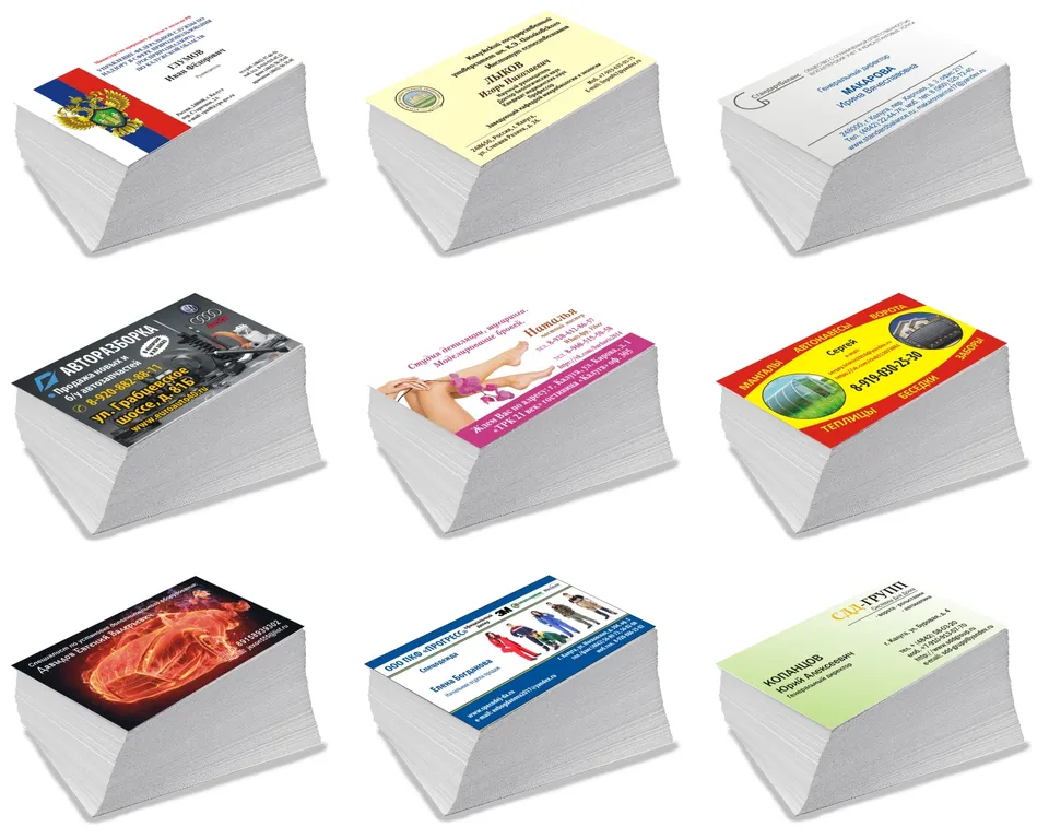 Изготовление сотни визиток — это первый шаг к созданию целостного делового стиля. Карточки дополнят фирменные бланки и конверты. Вы сможете оценить, насколько удачным получился дизайн, перед тем как заказывать крупную партию. Качественные визитки работают на ваш имидж долго после вручения. Они напоминают о вас клиентам и помогают наладить новые деловые связи.