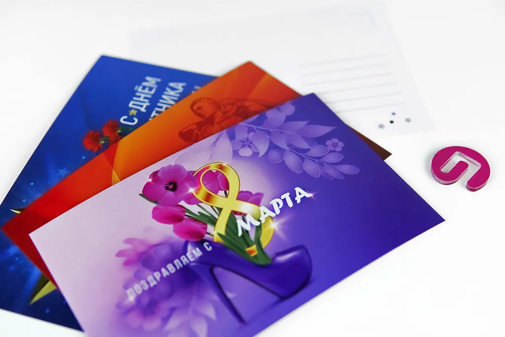 Как заказать поздравительные открытки? Пришлите нам изображение и текст. Наш дизайнер предложит варианты вёрстки. Вы утверждаете макет — мы запускаем печать. Весь процесс занимает от одного дня. Можем изготовить как один экземпляр, так и крупный тираж.