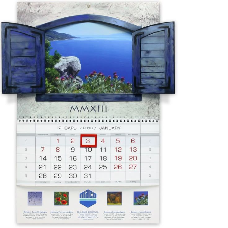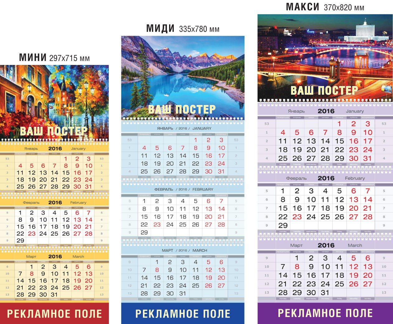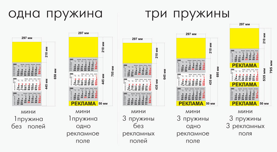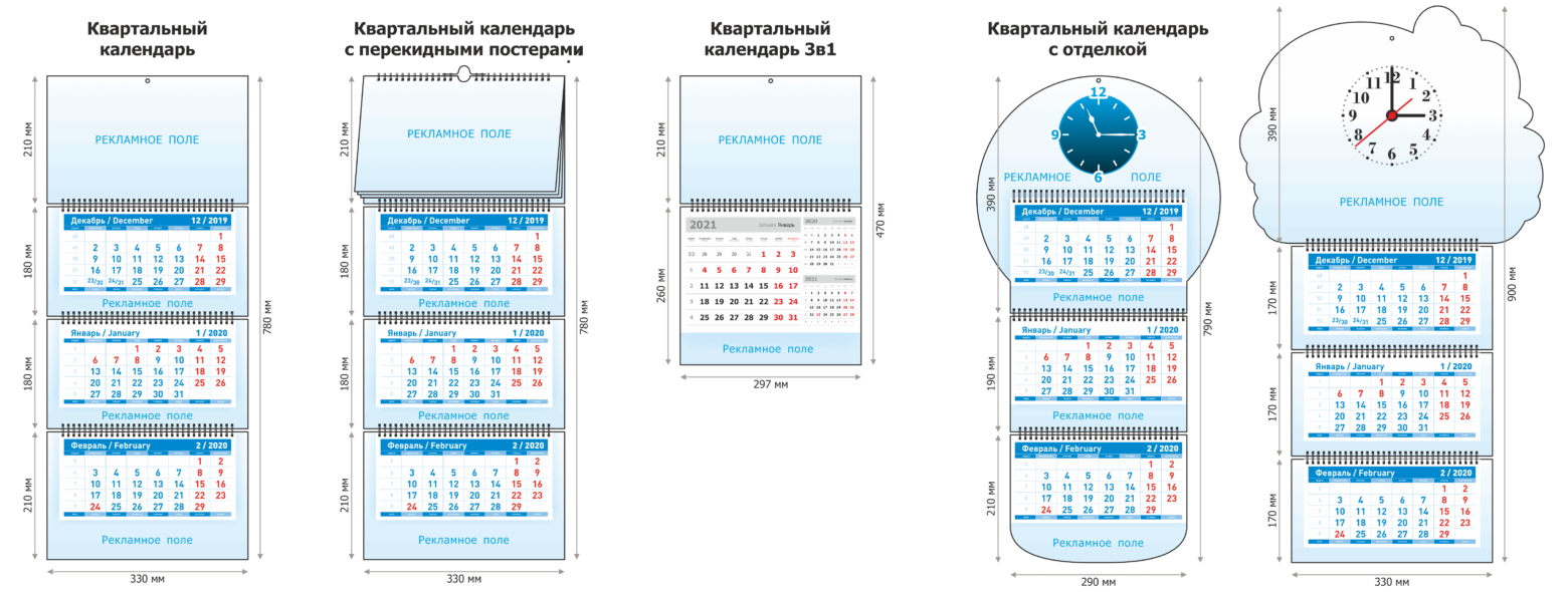 Стандартные форматы печатных календарей (А2, А3, А4)