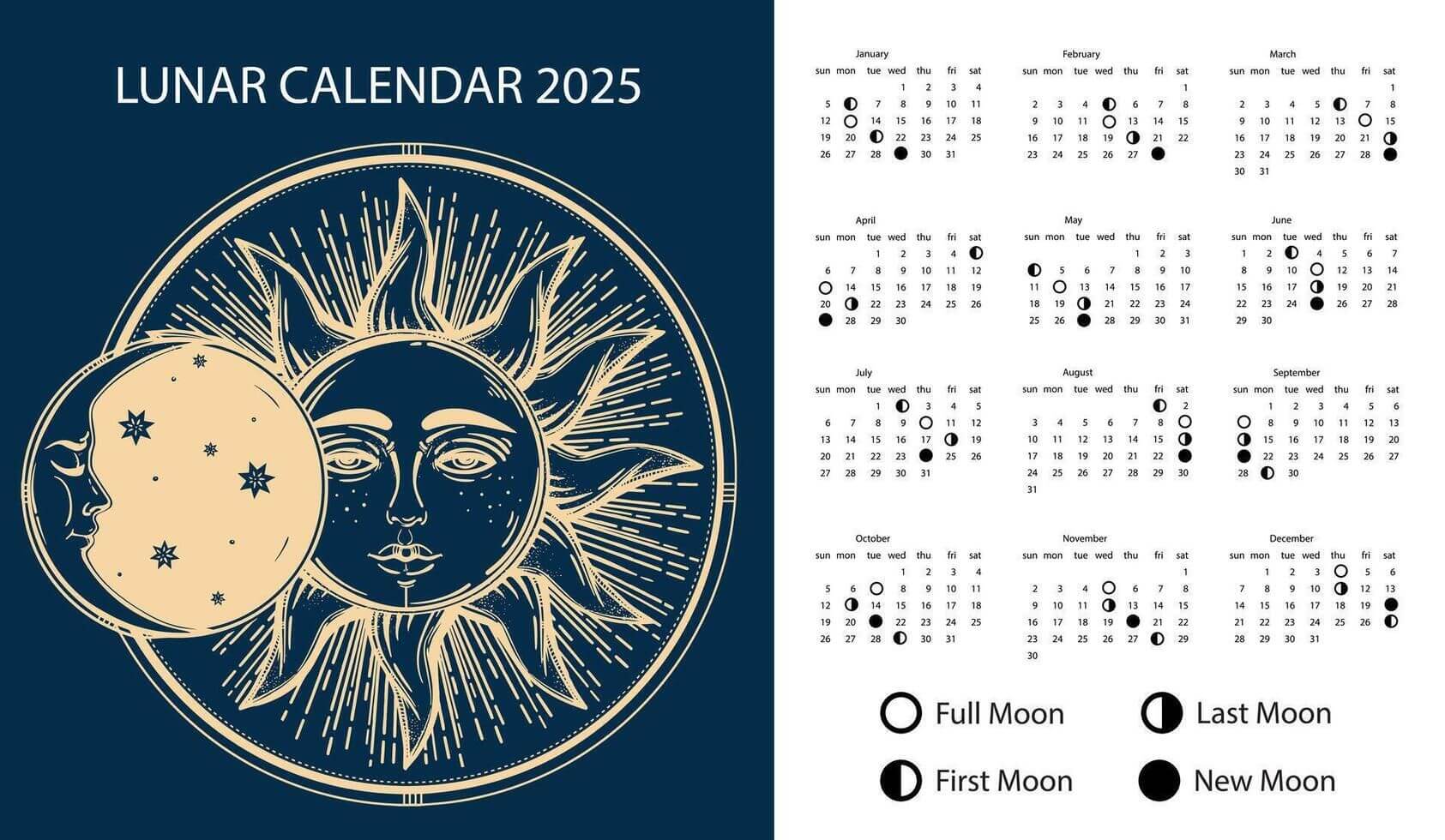 Лунные календари строятся на фазах Луны и часто используются для определения благоприятных дней — например, в сельском хозяйстве или при выборе дат для стрижки.