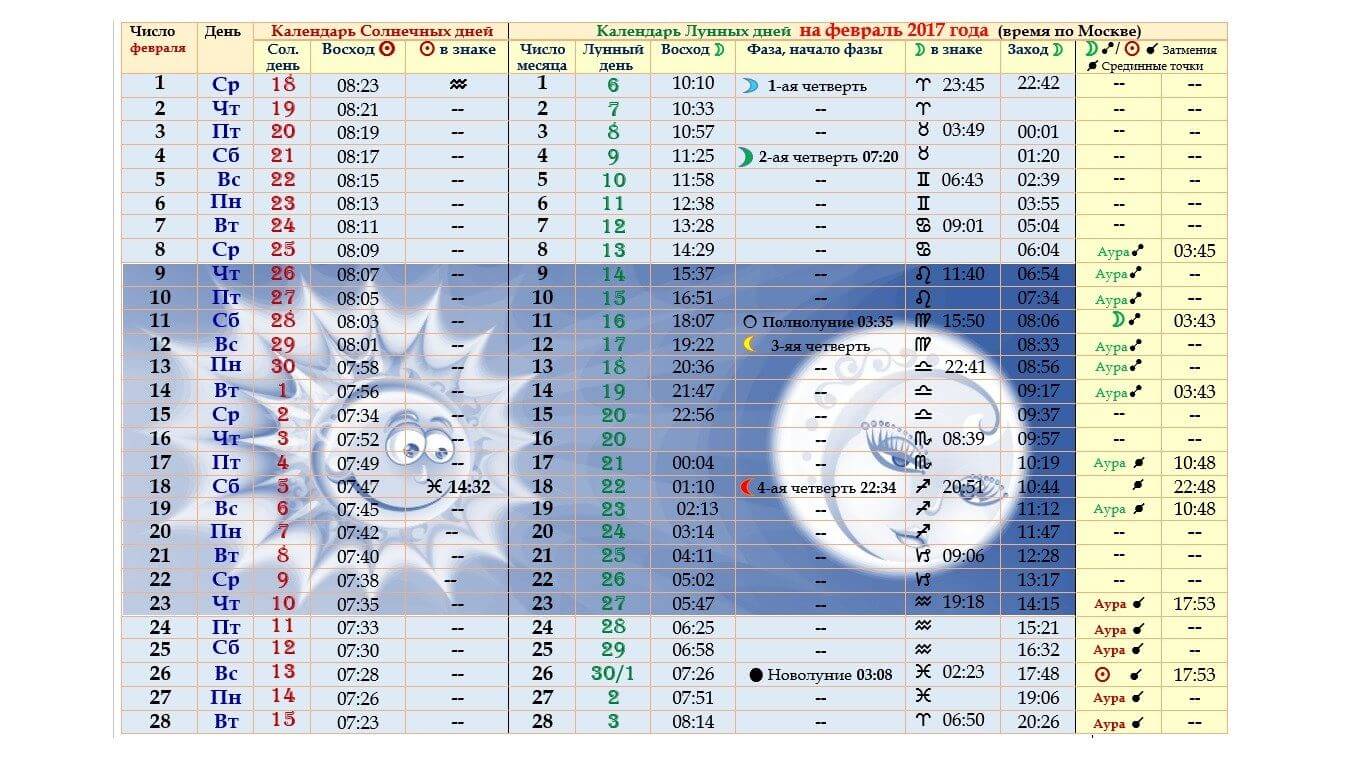 Особенности лунного календаря: