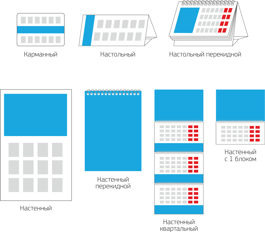 Печатные календари: настенные, настольные, карманные