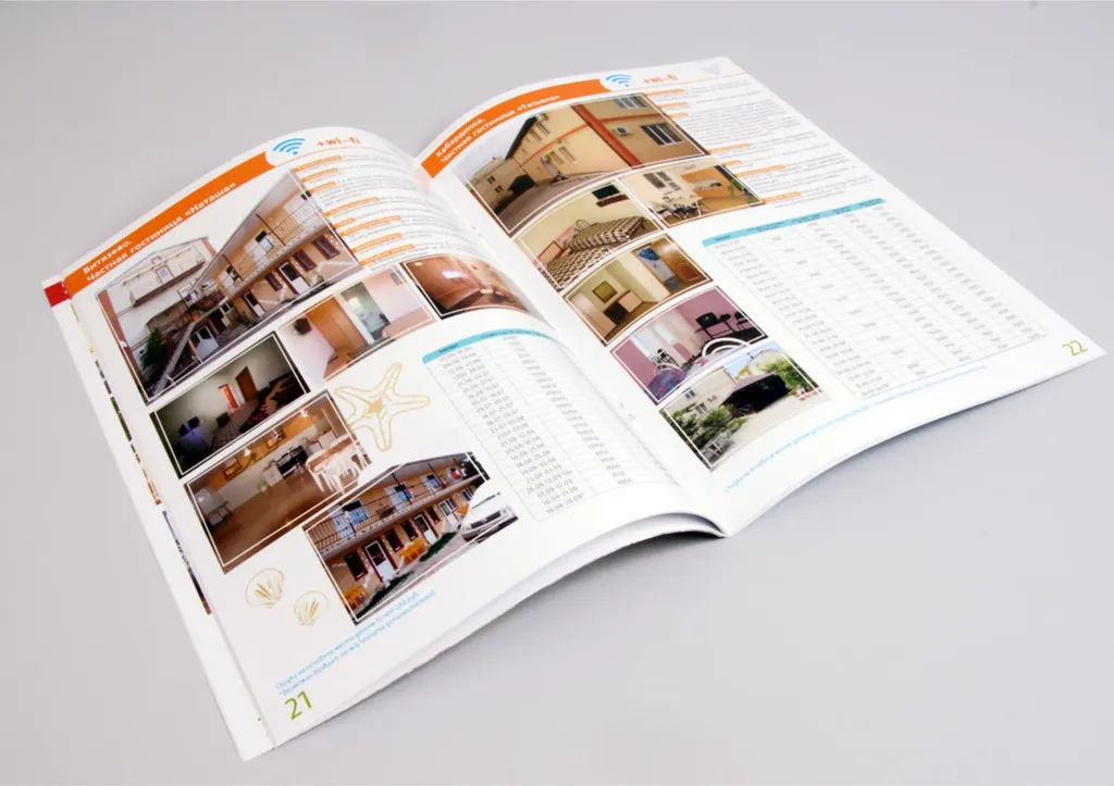 Ощущения от листания тактильно влияют на восприятие. Для солидных решений часто выбирают печать на мелованной бумаге. Её глянцевая или матовая поверхность отлично передаёт цвет, делает изображения яркими. Плотность выбирайте от 130 г/м² для внутренних блоков. Обложку стоит сделать ещё плотнее — от 250 г/м², возможен дополнительный ламинация для защиты. Что касается скрепления, то вариантов несколько: