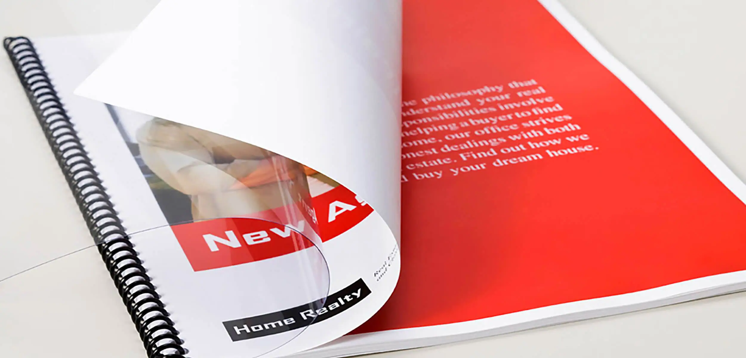 Различают два основных типа скрепления. КБС (клеевое бесшвейное) — бюджетное решение с ровным корешком. Подходит для изданий до 100 страниц. Переплёт на пружину позволяет раскрывать каталог на 360°. Используйте его для технической документации или образцов.