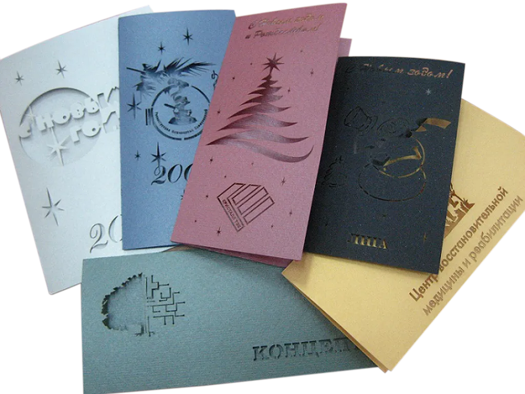 подарочные вкладыши и открытки со сложным фигурным краем;