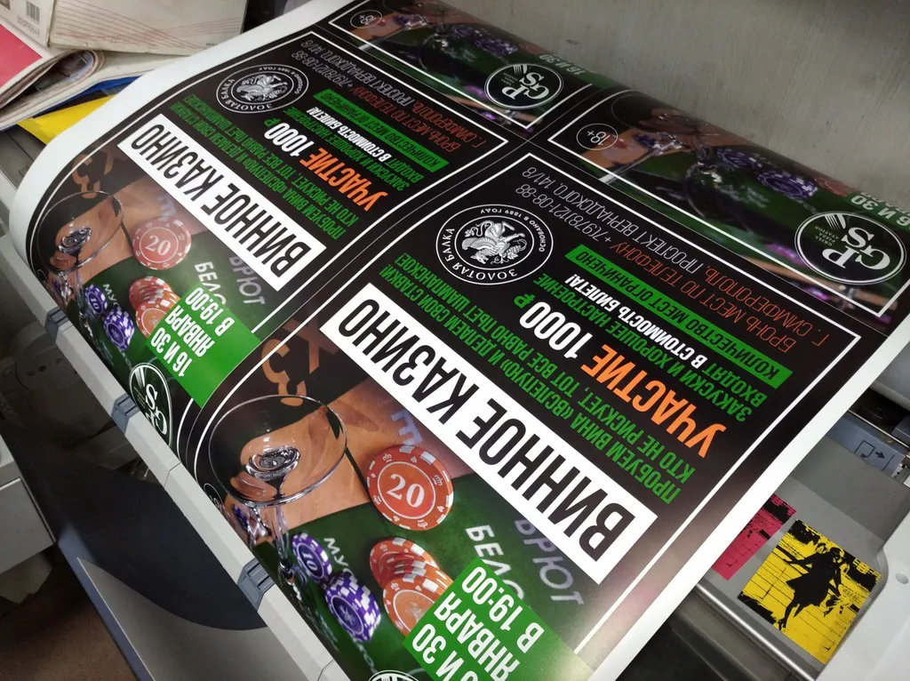 Печать плакатов большого формата на плёнке даёт дополнительные возможности. Например, можно создать яркую наклейку на витрину с пропечаткой на просвет. Это особенно эффектно выглядит в тёмное время суток. В любом случае, итоговый выбор зависит от ваших задач и бюджета.