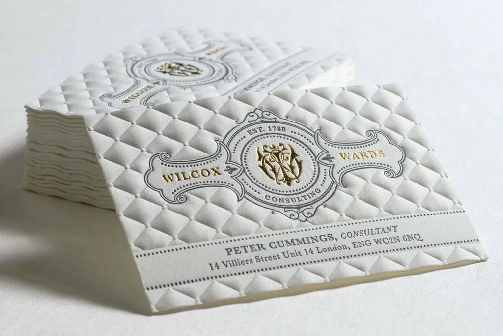 Технология идеально подходит для минималистичного и элегантного дизайна. Чаще всего конгревом наносят логотип, имя или важный символ. Эффект сдержанной роскоши достигается за счёт игры света и тени на рельефе. Это делает визитку статусной даже без сложной фоновой печати.