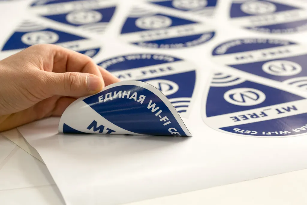 Для наружного применения нужны особые материалы. Мы печатаем на виниловой плёнке с защитным ламинатом. Такие стикеры не боятся ни ливня, ни мороза, ни ультрафиолета. Их можно мыть агрессивными средствами — краска останется яркой, а клейкий слой — прочным. Идеальный вариант для оформления витрин, указателей, рекламы на транспорте.